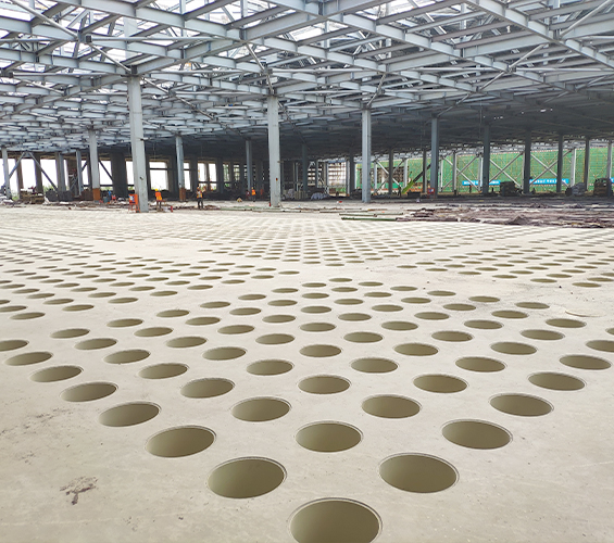 圓形華夫板的生產(chǎn)工藝具有以下優(yōu)勢:1.保證成孔準(zhǔn)確與樓板平整度采用的生產(chǎn)工藝,使用標(biāo)準(zhǔn)模板...